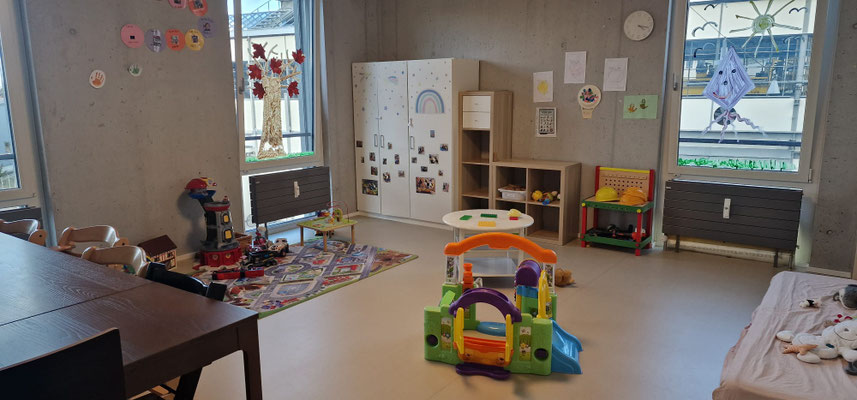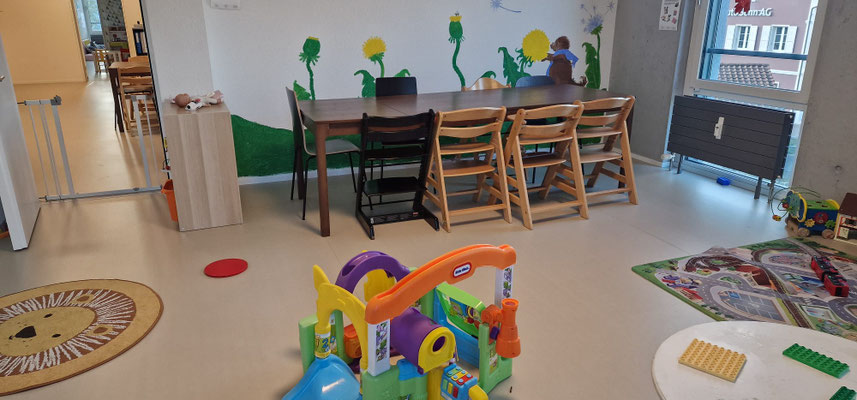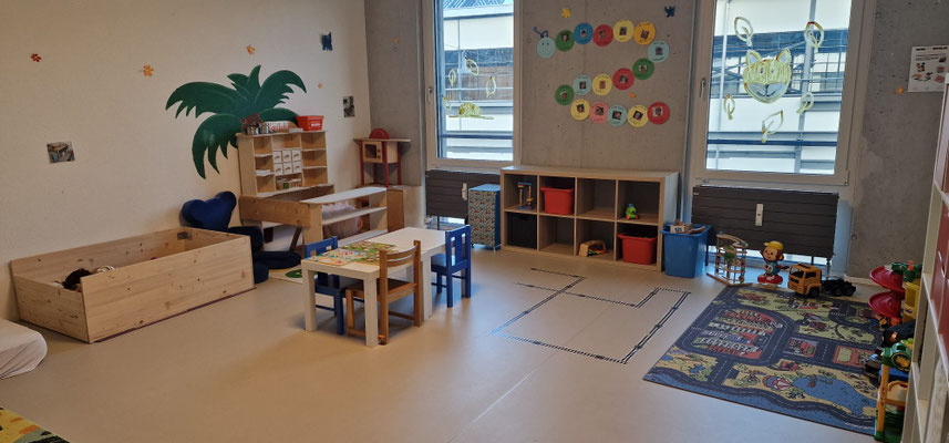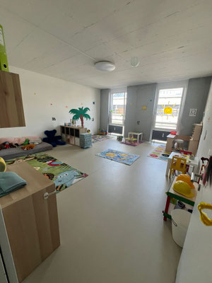 Unsere Räumlichkeiten sind sehr grosszügig, hell und modern. Auf dem Luwa Areal steht uns ein Spielplatz und ein Fussballplatz zur Verfügung, auch ein grosser Kiesplatz lädt zum verweilen mit den Kindern ein. Wir haben keinen eigenen Garten, was uns aber nicht davon abhält jeden Tag viel Zeit mit den Kindern Draussen zu verbringen.